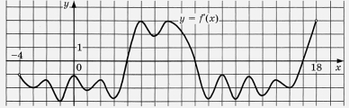 На рисунке изображён график производной функции ƒ(х), определённой на интервале (-4; 18). Найдите количество точек экстремума функции ƒ(х) на отрезке [0; 13].